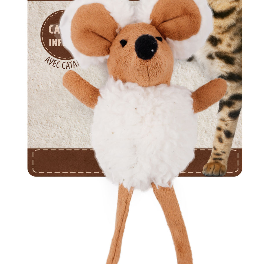 Jouet pour stimuler l'instinct de chasseur de votre chat ! Avec des craquements et de l'herbe à chat pour un pour plus de plaisir. Avec deux longues pattes et du molleton combiné à de la peluche, très irrésistible. Fabriqué en matériaux durables.