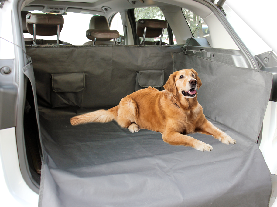 Cette housse est résistante à l'eau et facile à nettoyer. Elle s'adapte à presque tous les coffres de voiture et est équipée de deux poches pratiques. Facile à attacher aux appuis-tête de la banquette arrière et vous avez également la possibilité d'utiliser des ventouses pour maintenir les côtés correctement pour une protection optimale de votre coffre. Comme cette housse est déperlante, elle est idéale pour transporter votre chien après une baignade (mouillé) sans salir complètement votre voiture. Équipée d'un rabat supplémentaire qui protège votre pare-chocs contre les rayures lorsque votre chien entre et sort.